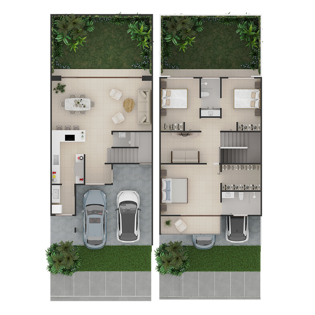 Casas diseñadas con una gran cantidad de ventanas y con techos más altos para brindar iluminación y ventilación natural a los espacios. Vos escoges el tamaño de tu lote, los niveles, cantidad de habitaciones y acabados para diseñar un hogar hecho a tu medida.